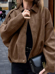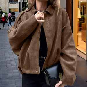 AliExpress Amazon 2025 新しいスエードテクスチャエフェクトボンバージャケットルーズジッパーカジュアルジャケット