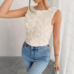 【トゥーサンガーデン2色】GemingレトロUネック立体フラワーベスト夏新作ノースリーブトップス