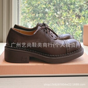 高品质~2025新款啊miu家新款做旧小皮鞋女系带真皮百搭乐福鞋单鞋