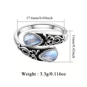 ヨーロッパとアメリカのムーンストーンスプーンリングファッショナブルなビクトリア朝スタイルのレトロなレリーフリボンボスニアリング