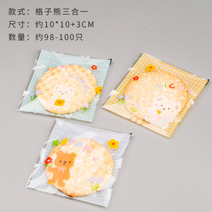 チェック柄クマ 3-in-1;OPP;10*10+3