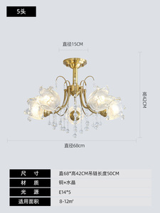 工場直販全銅リビングルームシャンデリアクリスタルランプフレンチライト高級ベッドルームランプアメリカンレトロ新中山ランプ