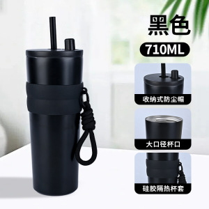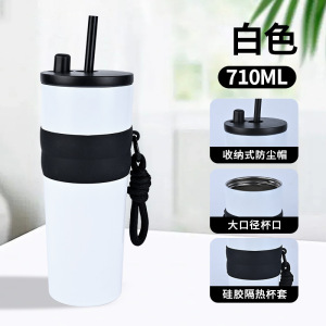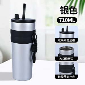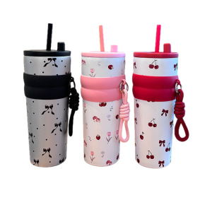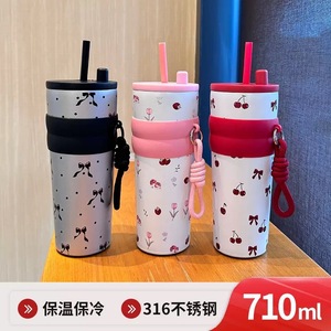 見栄えの良いステンレス製魔法瓶カップ、大容量、ポータブルストローカップ、女性用フレッシュコーヒーカップ、アウトドア用ロープ付き