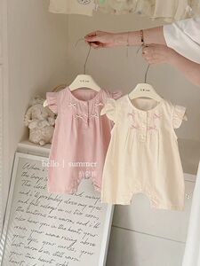 夏季新款连体衣薄款衣服夏装纯棉女宝宝婴幼儿飞袖短爬外出服潮