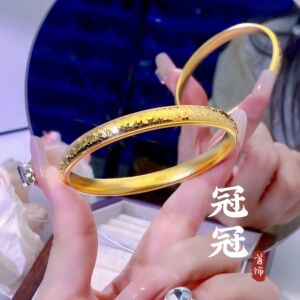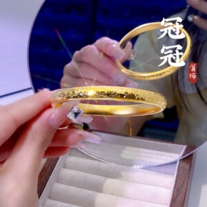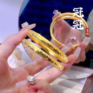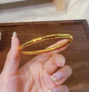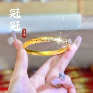 古法砂金爆閃砕氷泥鳅背手镯 黄銅金メッキ蓮花円形女性用ブレスレット 長持ちする色褪せない