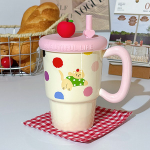女の子向けのかわいい猫のセラミックカップ、見栄えの良いストローカップ、蓋付きのクリエイティブなマグカップ、お土産用ウォーターカップ、学生用カップ