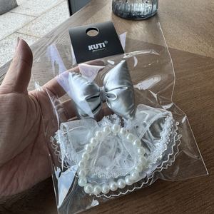白ガーゼスカート+レイクグリーンリボン+ネックレス【3点セット】