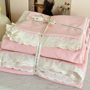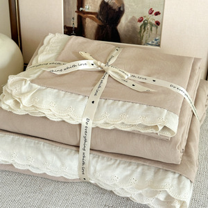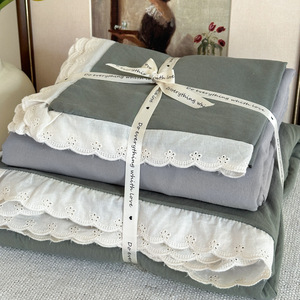 2025 新フレンチレースレース無地 3 点セット学生寮ベッドシーツキルトカバーウォッシュコットン 4 点セット