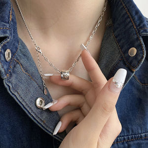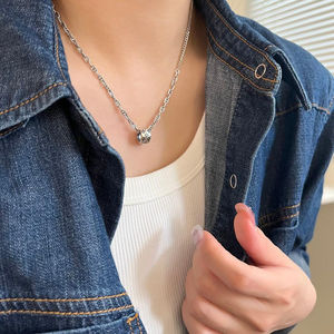 925纯银四叶草项链小众高级感复古重工猪鼻链卫衣锁骨链情侣潮