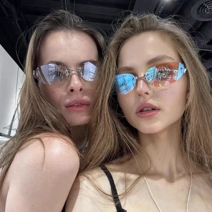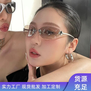 Y2K ホットガールパーソナライズされた屋外日焼け止めスターボーダーレンズサングラス女性用ヨーロッパとアメリカのフレームレスオーバルレトロハイエンドサングラス