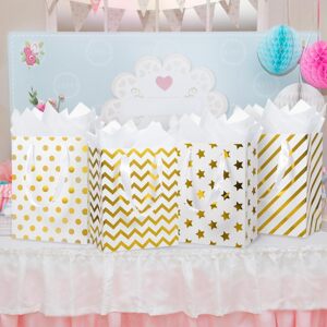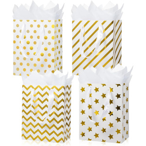 高級ポータブル紙袋包装袋ホットゴールドスタードット波状ストライプホワイトカードギフトバッグクラフト紙袋