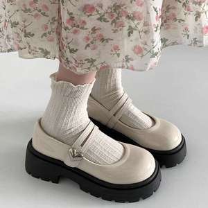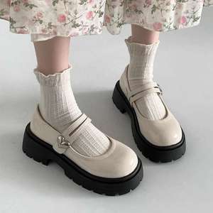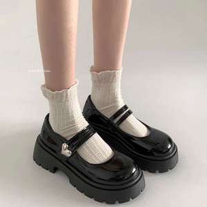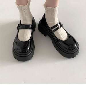 女性のための黒のラウンドトゥ厚底メリージェーン革靴 2025 新しい夏のレトロなスカート浅い厚いヒールの靴