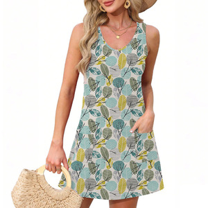 2025 新しいクロスボーダー女性のプリントドレス夏の女性のハイエンドスカートロングスカートサスペンダースカートサマードレス