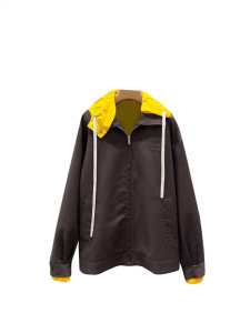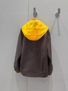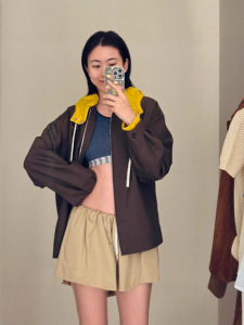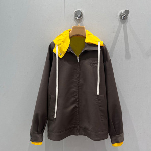 mmjia 25 早春の新レターパッチ装飾ニッチデザインコントラストカラーダブルカラーフード付きフェイクツーピースジャケット