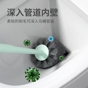 プラスチック製トイレブラシ、ロングハンドル、死角なし、バスルーム用品、多機能家庭用壁掛けトイレブラシ、ベース付き