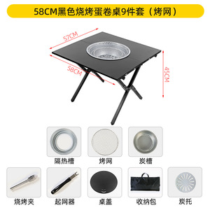 58cm ブラック BBQエッグロールテーブル 9点セット(焼き網)