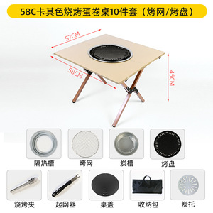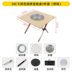 58c カーキ BBQエッグロールテーブル 9点セット(グリルネット)