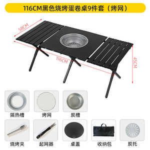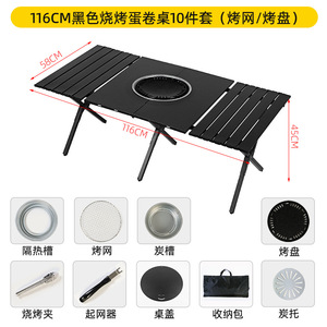 116cm ブラックバーベキューエッグロールテーブル 10点セット(メッシュグリルパン)
