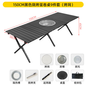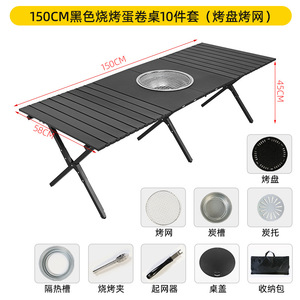 売れ筋-150cm ブラックバーベキューエッグロールテーブル 10点セット(天板・焼き網)