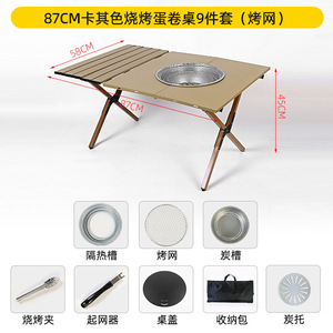 87cm カーキ BBQエッグロールテーブル 9点セット(焼き網)