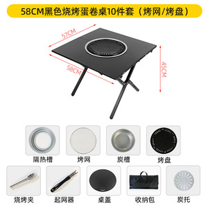 58cm ブラックバーベキューエッグロールテーブル 10点セット(メッシュグリルパン)