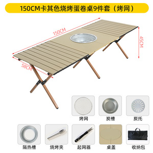 売れ筋-150cm カーキ バーベキュー エッグロールテーブル 9点セット-グリル