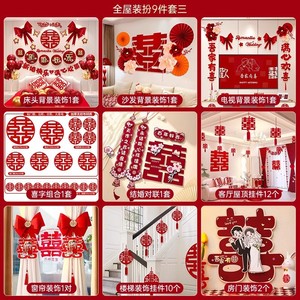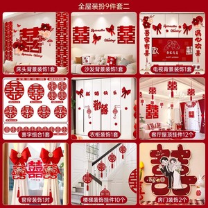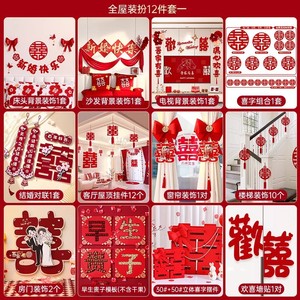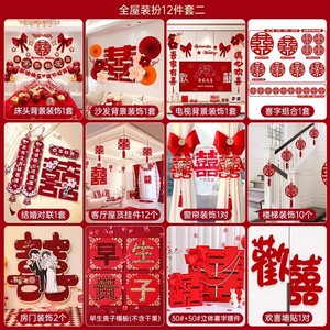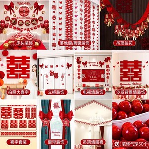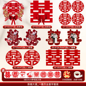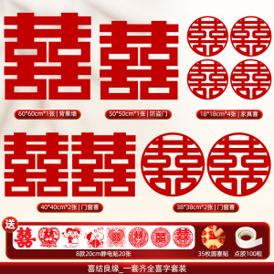 結婚式の特別なハッピーワード、結婚式の部屋のレイアウト、寝室の装飾、囍の文字、窓の花、ドアステッカー、婚約写真の小道具