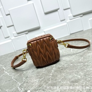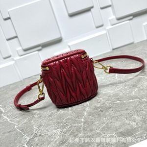 Ah Miao レディース プリーツ テクスチャー シープレザー スモール スクエア ボックス バッグ 化粧品バッグ スモール ウェイスト バッグ ポケット ハンドバッグ ライト ラグジュアリー