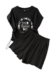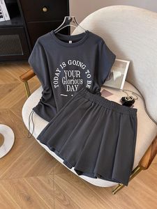 ファットmm特大サイズ150kg夏の新しい巾着年齢軽減痩身トップショーツルーズカジュアルツーピーススーツ