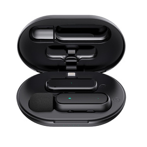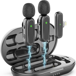 跨境一拖二领夹麦克风带充电仓手机直播收音降噪麦克风无线话筒