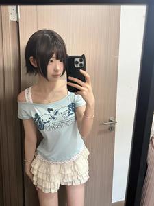 日本製甘くて可愛いソフトガール子供服デザートウサギ水玉キャミソールフェイクツーピース半袖Tシャツトップス