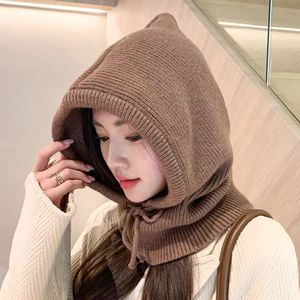 新しいトレンディなバラクラバ帽子女の子無地かわいいニット帽子スカーフワンピースプルオーバー暖かい帽子冬