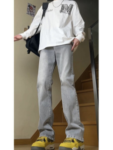 ファッショナブルなイエローマッドジーンズメンズ2025春秋冬新作アメリカンファッションブランドハイストリートスリムストレートレッグブーツカットパンツ