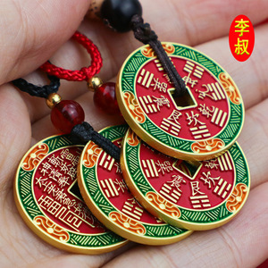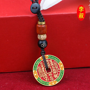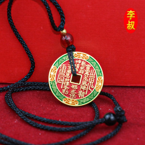 Uncle Li の卸売古代スタイルのカラフルな山のゴブリン花祥雲バックルネックレス辰砂道教八卦安全バックルペンダントペンダント