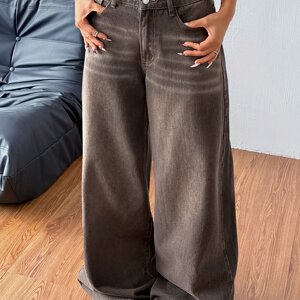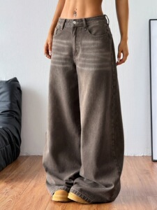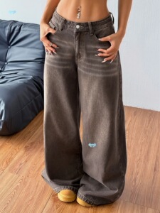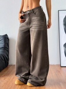 レディース カジュアル ワイドレッグ ローウエスト ジーンズ ストリート スタイル ルーズ
