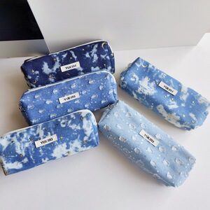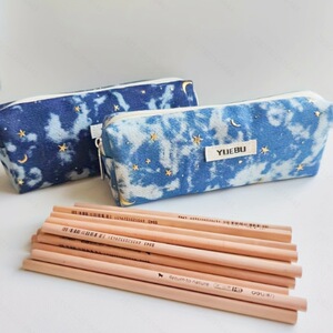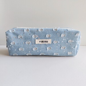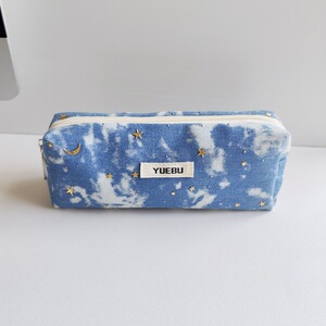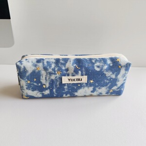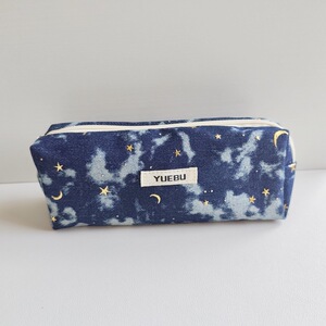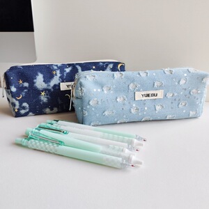 ウォッシュデニムスパンコールムーンスターデコレーション大容量鉛筆ケース汚れにくい耐摩耗性文具収納