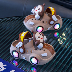 子供用スリッパ、夏の女の赤ちゃんの車、明るいライト、屋内用ソフトソール滑り止めスリッパ、男の子用エッグマン下駄