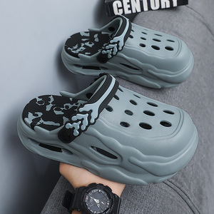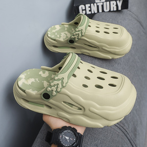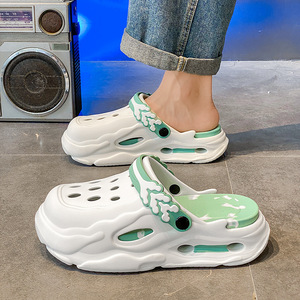 メンズ夏用クロックス、滑り止め、防臭つま先スリッパ、カップル厚底、身長アップメンズスポーツビーチサンダル