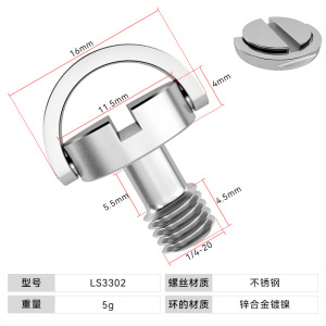 スポットインチ1/4手締めネジステンレスカメラ固定ネジ3/8丸頭クイックリリースプレートジンバルネジ
