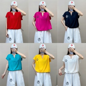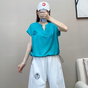 夏の新しいルーズブラウス、巾着トップス、通気性、吸汗性、ファッショナブルで多用途なスクエアダンスダンス服
