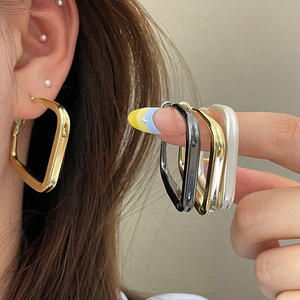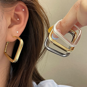 ヨーロッパとアメリカの女性用スクエアイヤリング、シンプルでファッショナブルなイヤリング、2025年の新しいトレンディなイヤリング、ニッチなデザイン、大きなイヤリング