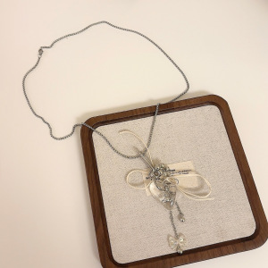 甘くてクールなスタイル y2k パーソナライズされたクリスタルラブリボンペンダントネックレス女性のニッチファッション多用途マルチ要素アクセサリー