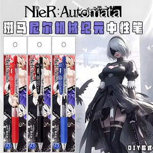 日本 ZEBRA ゼブラ限定版 ニーア メカニカル エイジ DIY ステッカー ゲルペン プレス ブラック 0.5 エルハ