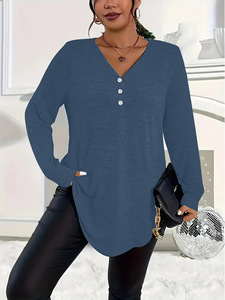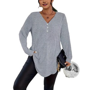 2025 ヨーロッパとアメリカの秋冬エレガントな大きいサイズの女性のアマゾン貿易クロスボーダー無地ボタン長袖トップ