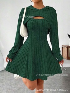 2025年アマゾンクロスボーダー気質起毛ニットウエストデザインツーピースプリーツドレス