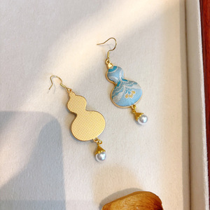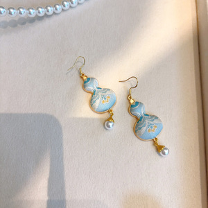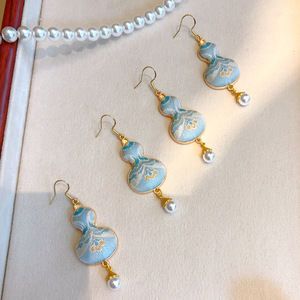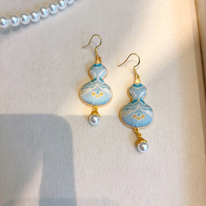 【完成品】純手作り生地無形文化遺産有名な宋錦古代スタイルの新しい中国風の古典的なひょうたんのイヤリング