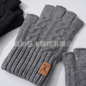 アウトドアライディング用ハーフフィンガーグローブ、秋冬アルパカウール、暖かく、防風性、通気性、持ち運び可能、シンプルな手袋で寒さを防ぎます。