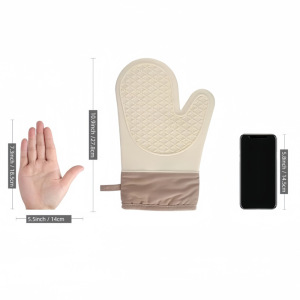スポットベージュシリコン火傷防止手袋、電子レンジ滑り止め、厚手の綿断熱手袋、高温ベーキング断熱手袋
