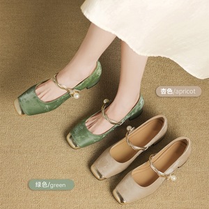 シープスキンバージョン〜女性用シングルシューズ2025夏の新しい中国風の女性用靴、人気のフレンチメリージェーンの女性用靴、ウェディングシューズ、革靴。