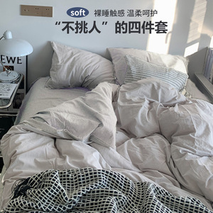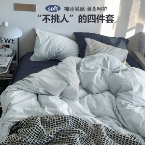 無地 シンプル 4点セット 起毛掛け布団カバー インススタイル 掛け布団カバー 寮 夏用 洗い綿寝具 3点セット